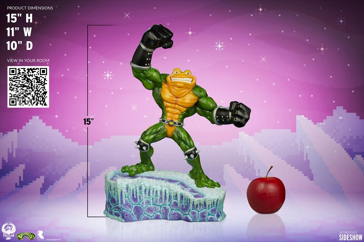 The Pimple Statue measures 15” tall, 11” wide, and 13.75” deep as the main muscle of the mutant toad squad stands on a base inspired by the game’s notorious Turbo Tunnel stage. He keeps his fists raised and ready for battle, wearing spiked black wrist guards and kneepads.
