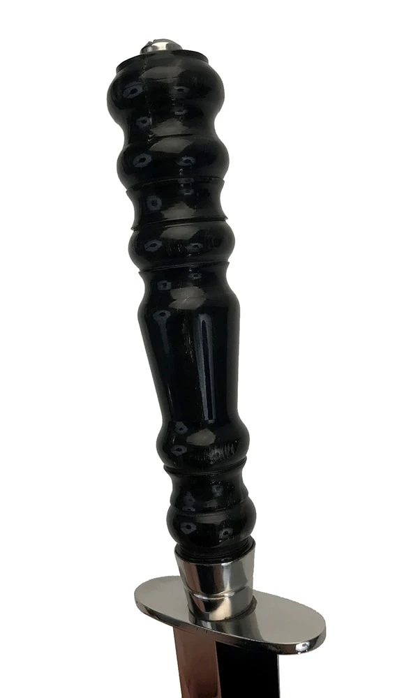 Each replica has a hand-forged stainless steel blade with a full-tang, stainless steel guard, and polished buffalo horn handle. The dagger is supplied with a dull edge on both sides of the blade for safety purposes and is not sharpened, but it features an unavoidably sharp point due to its shape. A wooden stand is included to display this collectible to maximum effect.
