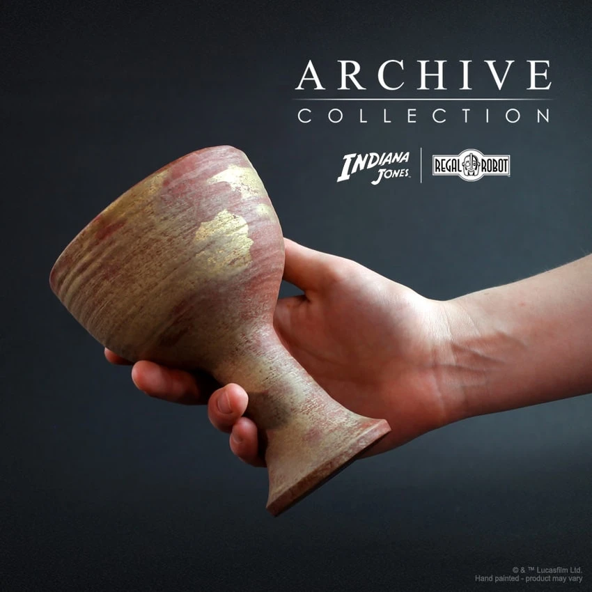 This Archive Collection prop replica from Indiana Jones™ is the Holy Grail Chalice from Indiana Jones and the Last Crusade™. Featured in the thrilling conclusion of the 1989 film, the grail is the pivotal prop of the film and the subject of a world-wide hunt by both good guys and bad guys. The film prop was made to look like terra cotta with gold leafing. In the movie, the true grail was hidden among numerous “false grails,” and those who sought it needed to pass three dangerous trials.