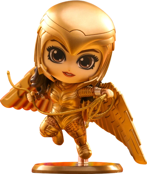 Based on Wonder Woman 1984, Sideshow and Hot Toys present the Golden Armor Wonder Woman (Flying Version) Cosbaby(S). Each Cosbaby stands approximately 9.5 – 10cm tall with a rotatable head. The Flying Version captures her wearing the golden armor and matching helmet with details.