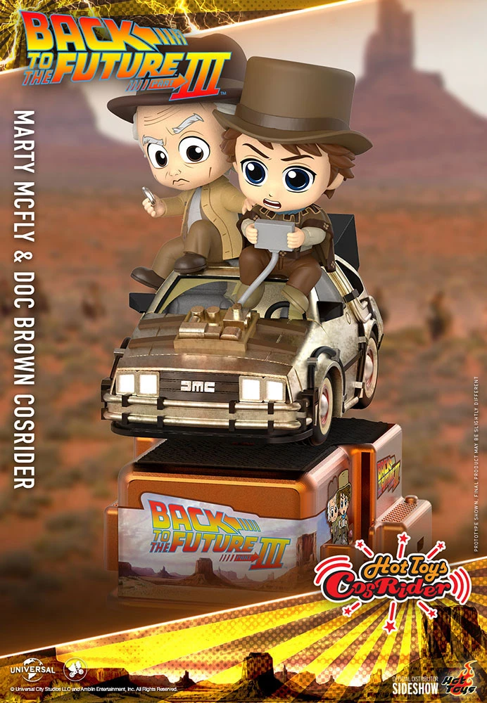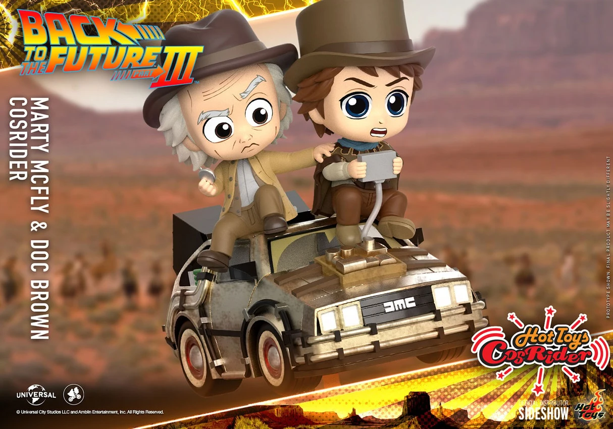 Marty McFly discovers he must travel back to 1885 to rescue his friend Doc Brown before the matter gets complicated! Based on the final installment of Back to the Future trilogy, Hot Toys is excited to reveal the latest CosRider that recreates the fan-favorite characters and the time-traveling DeLorean in a stylish way.