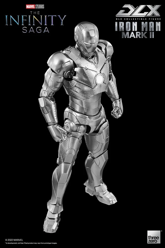 Sideshow, Threezero, and Marvel Studios are pleased to present the DLX Iron Man Mark 2 Collectible Figure as the next figure in the Marvel DLX series. This suit was constructed as a prototype, and the first Iron Man Armor built at Stark Industries. It is characterized by its metallic silver color scheme, applied here with a multi-layer metallic coating process to accurately replicate the design of Tony Starkās armored suit as seen in the Iron Man movies.